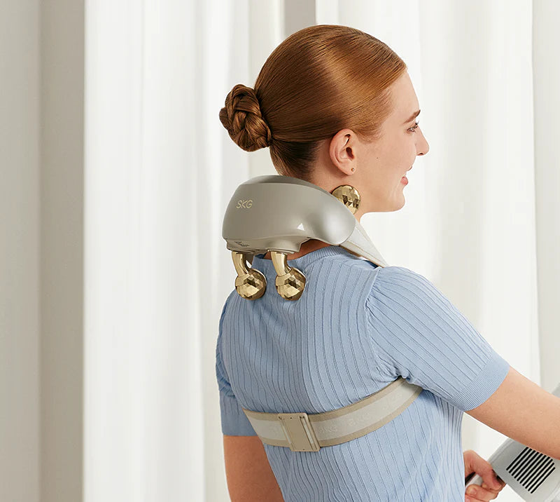 Lindern Sie Verspannungen und entspannen Sie schmerzende Muskeln mit unserem modernen Nackenmassagegerät.